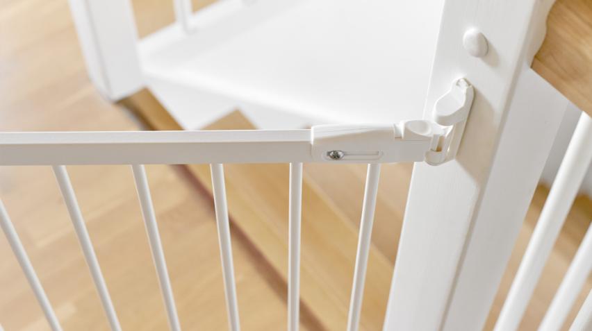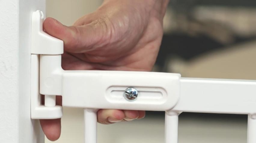 När grinden har skruvats fast i väggen eller dörrkarmen gör den unika och barnsäkra Quick Release-funktionen det snabbt och enkelt att ta bort det om du ska städa eller ha gäster. Grinden kan tas bort utan användning av verktyg.