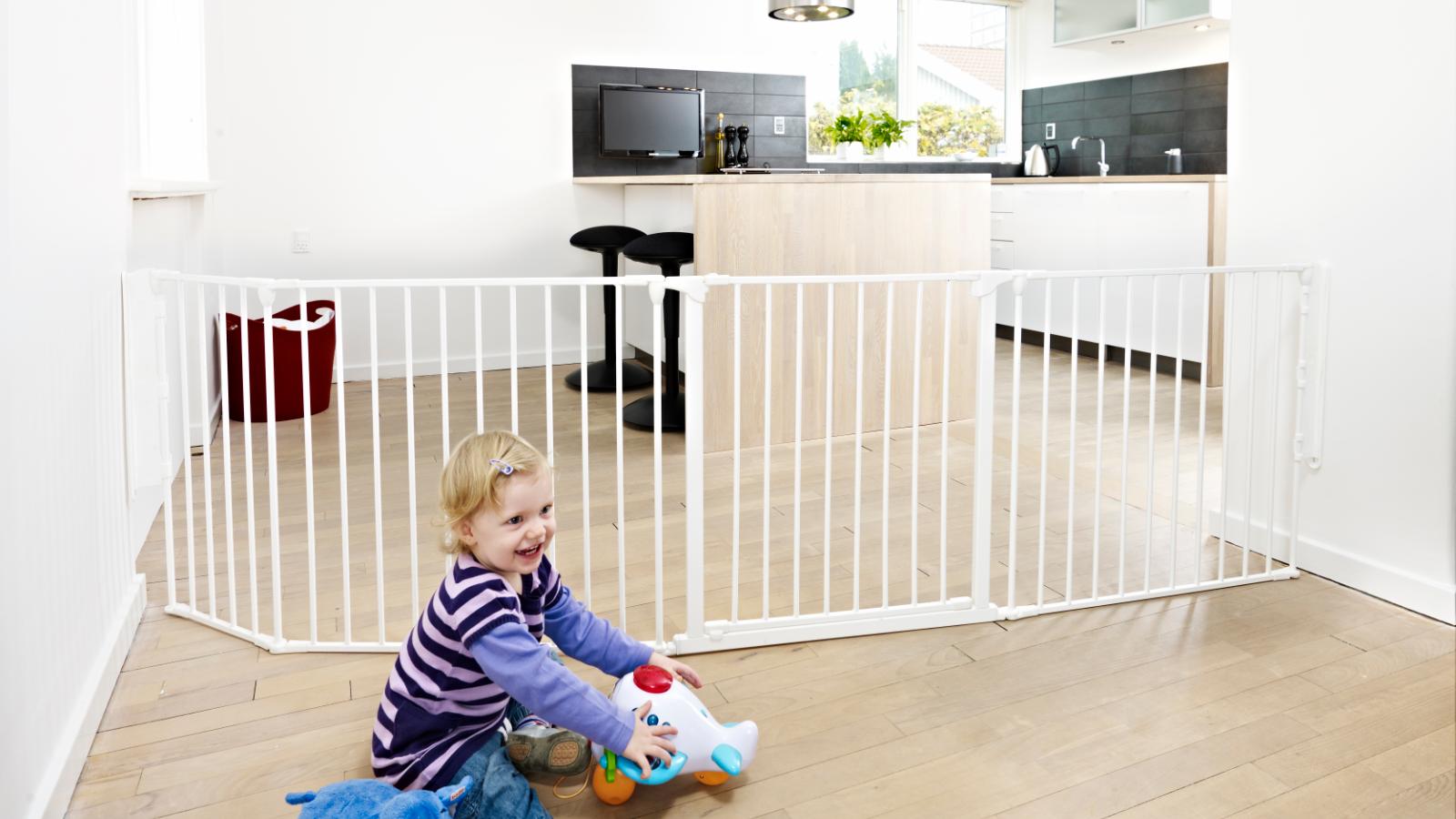 Vill du kunna avskärma ditt barn från ett område i hemmet som exempelvis vardagsrummet eller köket? Du kan välja en säkerhetsgrind som kan användas som rumsavdelare. Då kan du enkelt skapa en barnsäker plats i rummet och samtidigt göra det enkelt för de vuxna att använda hela rummet.