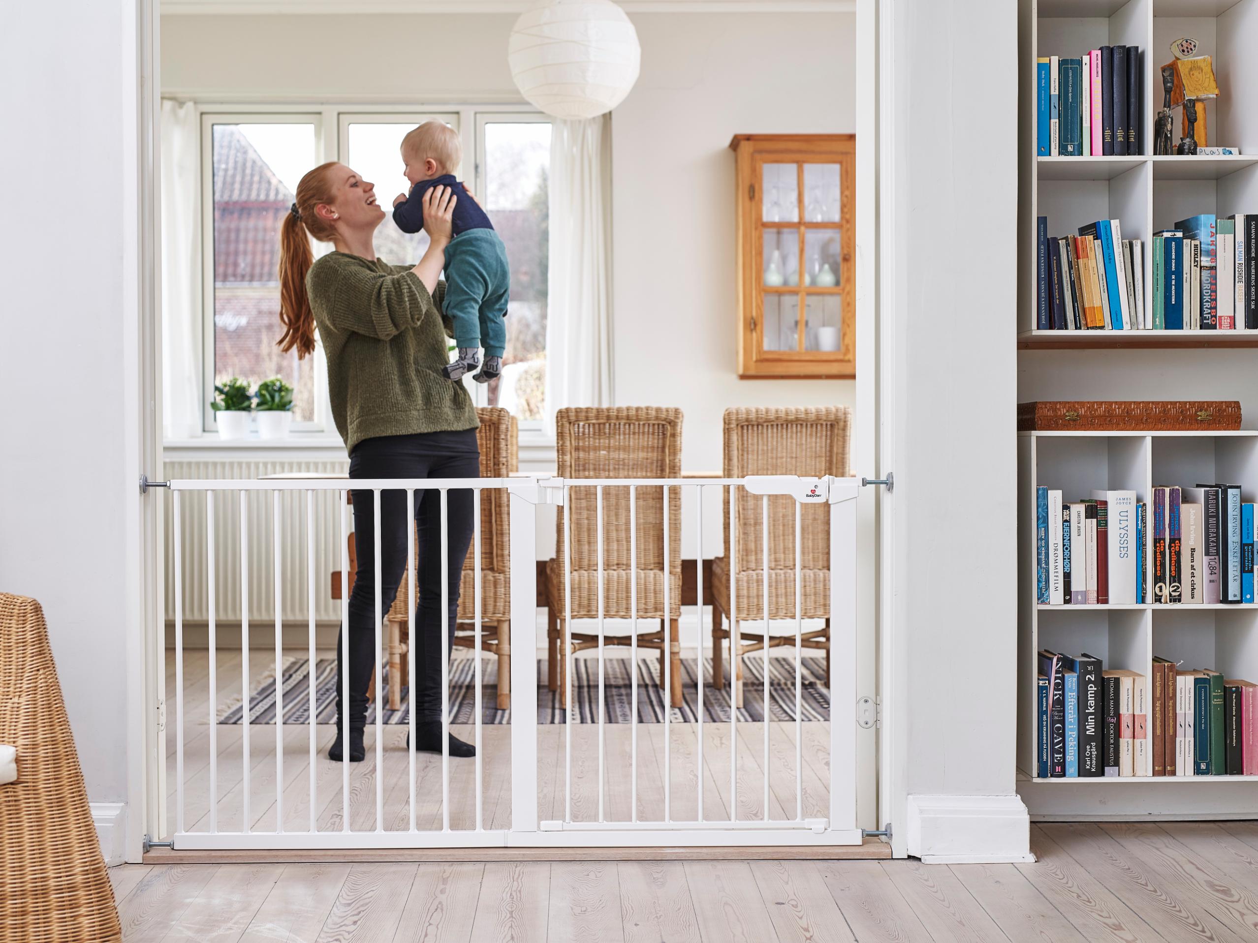 Om du har en tryckmonterad säkerhetsgrind kan du använda BabyDan Extend A Gate och BabyDan förlängningspanel för att förlänga grinden.