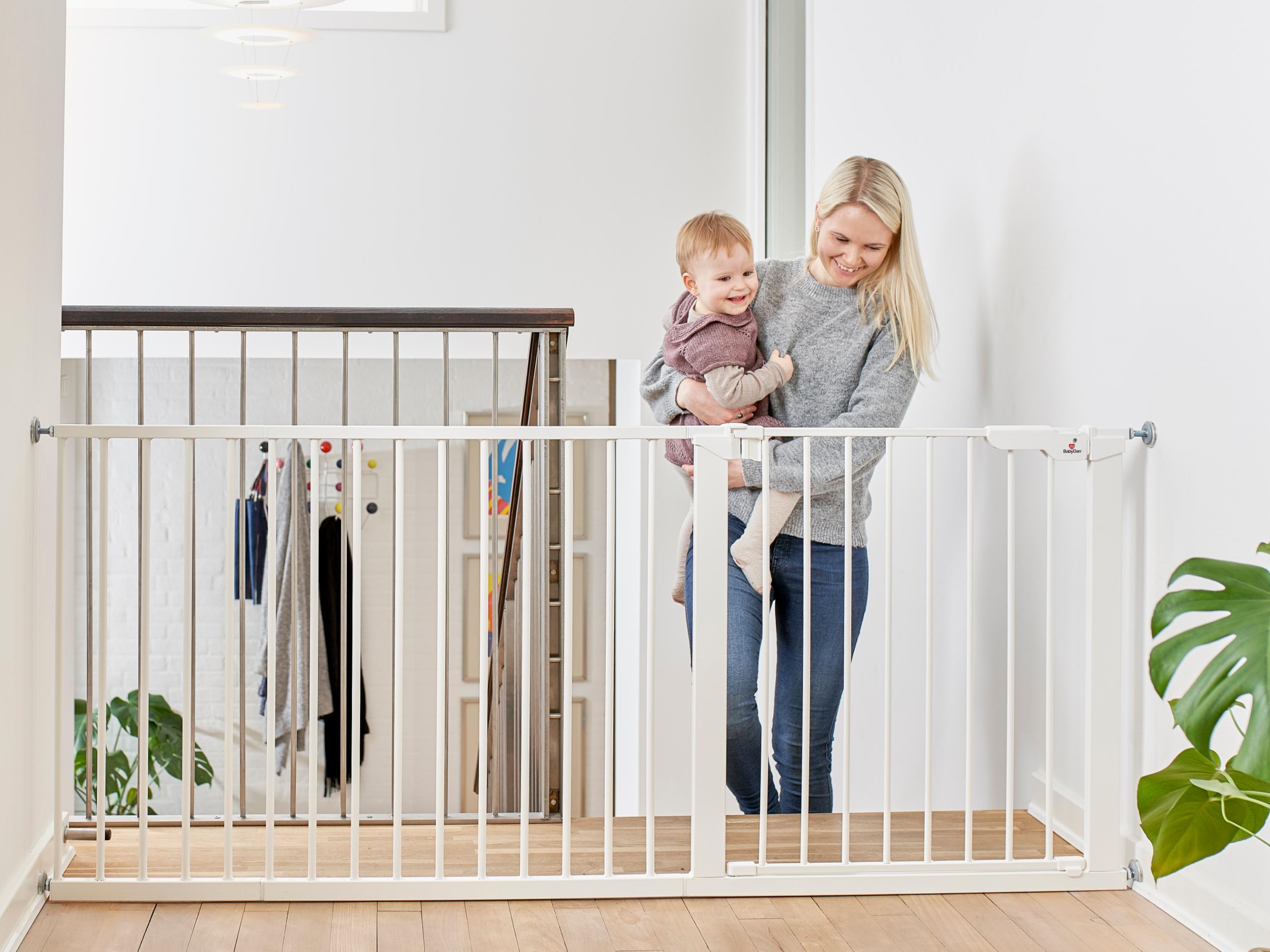 På så sätt är ditt barn helt avskärmat från trappan och hela trappan är barnsäkrad. Här kan du använda både tryckmonterade och väggmonterade grindar.