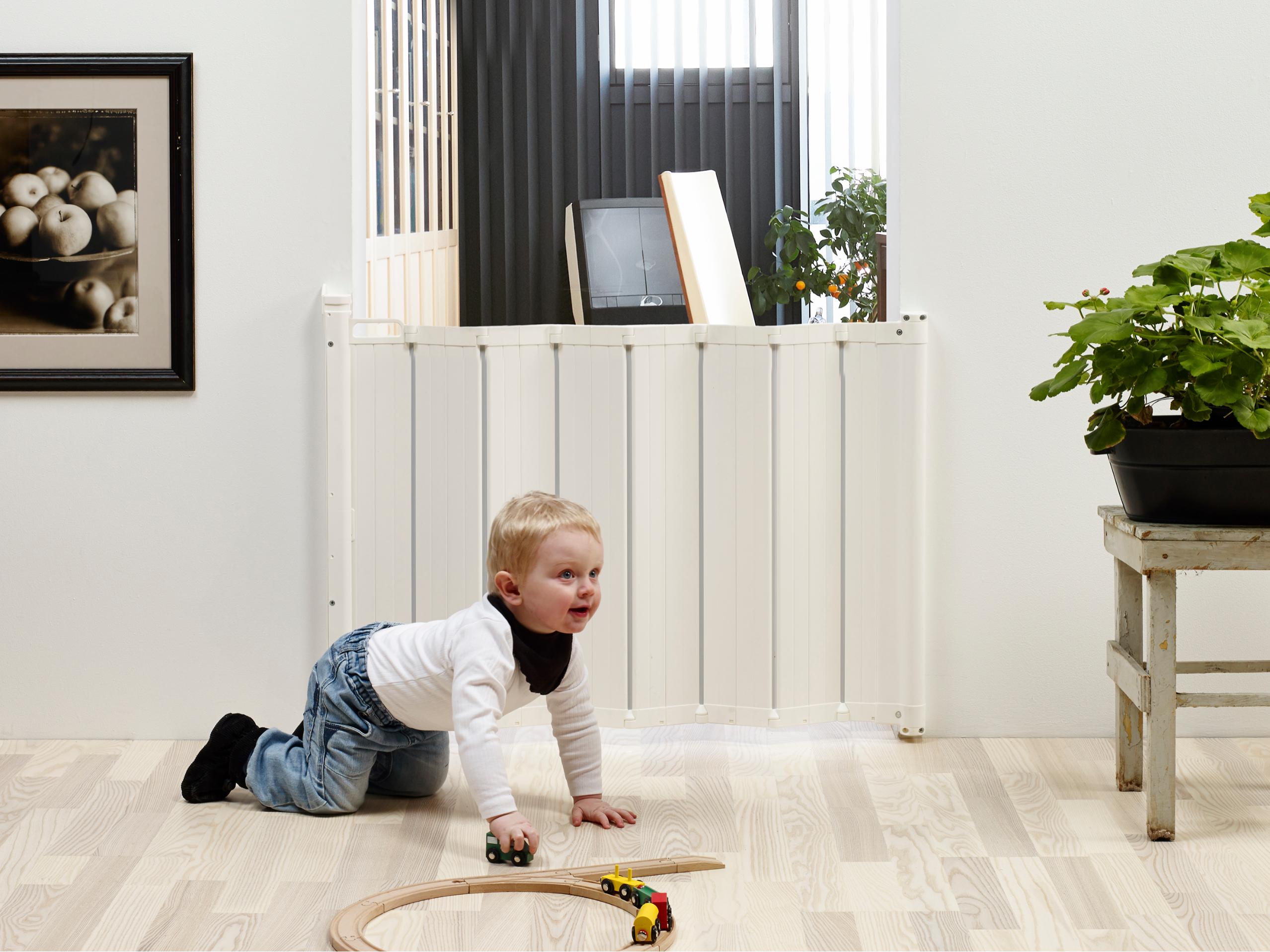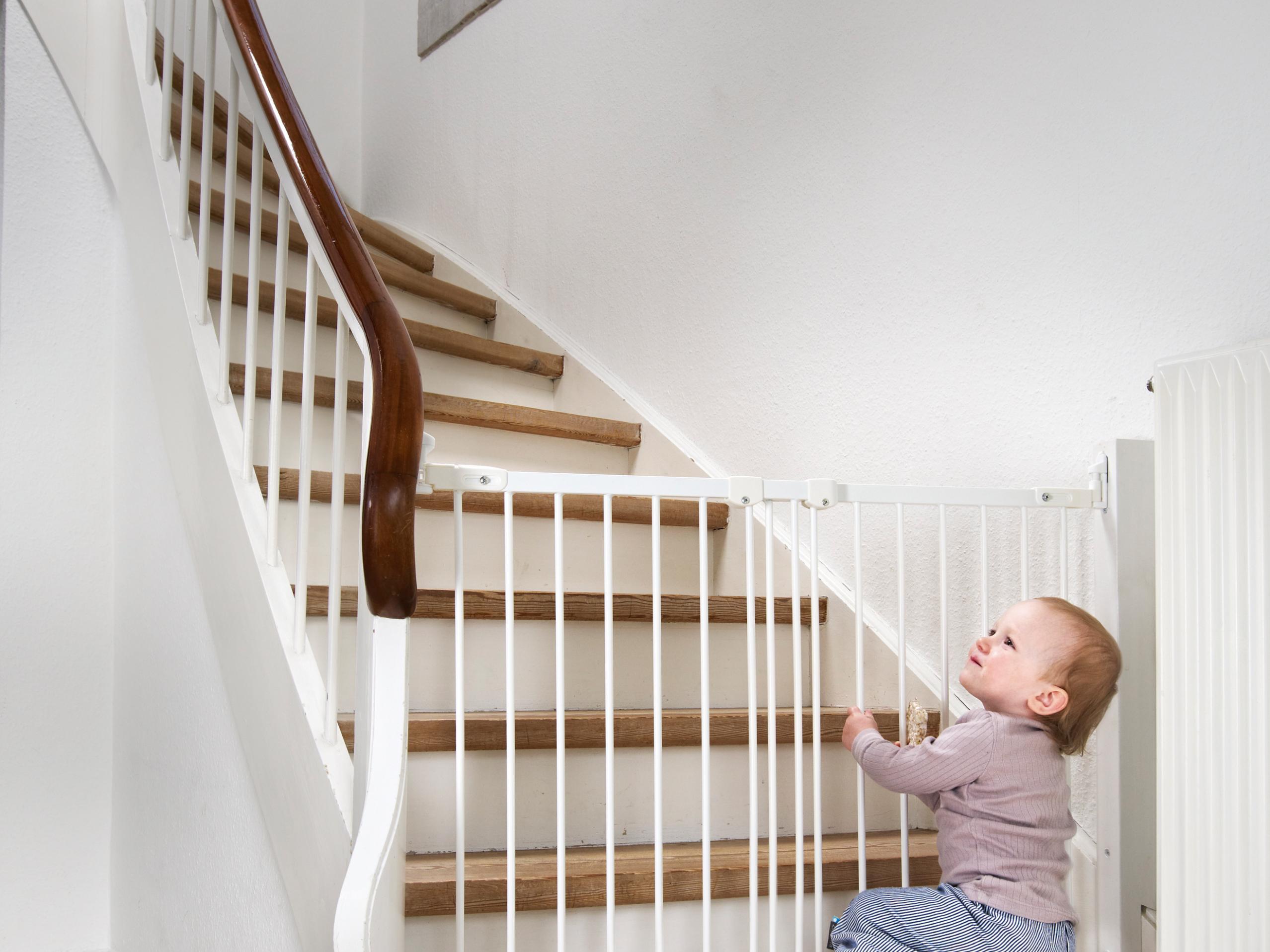 Du kan också flytta en väggmonterad säkerhetsgrind, men med en tryckmonterad säkerhetsgrind slipper du att montera väggbeslag där du vill använda grinden. Det innebär att det exempelvis är perfekt för att ta med till sommarstugan eller med hem till mor- eller farföräldrarna. Därför får du större frihet med en tryckmonterad säkerhetsgrind – om du ska använda en grind i en dörr, i en gång eller längst ner i trappan.