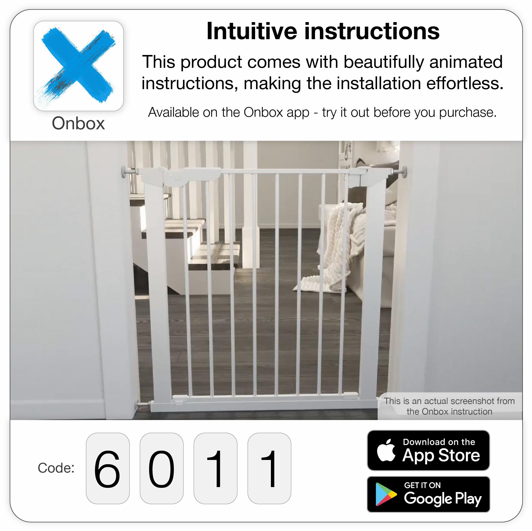 Föreställ dig att bruksanvisningen till din säkerhetsgrind är en animerad video – det är just det Onbox-appen tillhandahåller Den innehåller små videor som visar dig steg för steg hur man gör när man monterar säkerhetsprodukten där hemma. Du kan ladda ner Onbox gratis i App Store och Google Play.