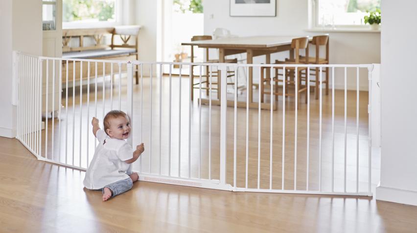 När ditt barn inte längre behöver en lekhage kan du enkelt omvandla den till en säkerhetsgrind med hjälp av de väggfästen som finns separat. Du kan sedan använda den för att skärma av en öppen spis, en bred eller oregelbunden dörröppning, en trappa eller till och med som rumsavdelare. Grinden kan utökas med både små och stora sektioner, som kan köpas separat, och kan anpassas till dina exakta behov.