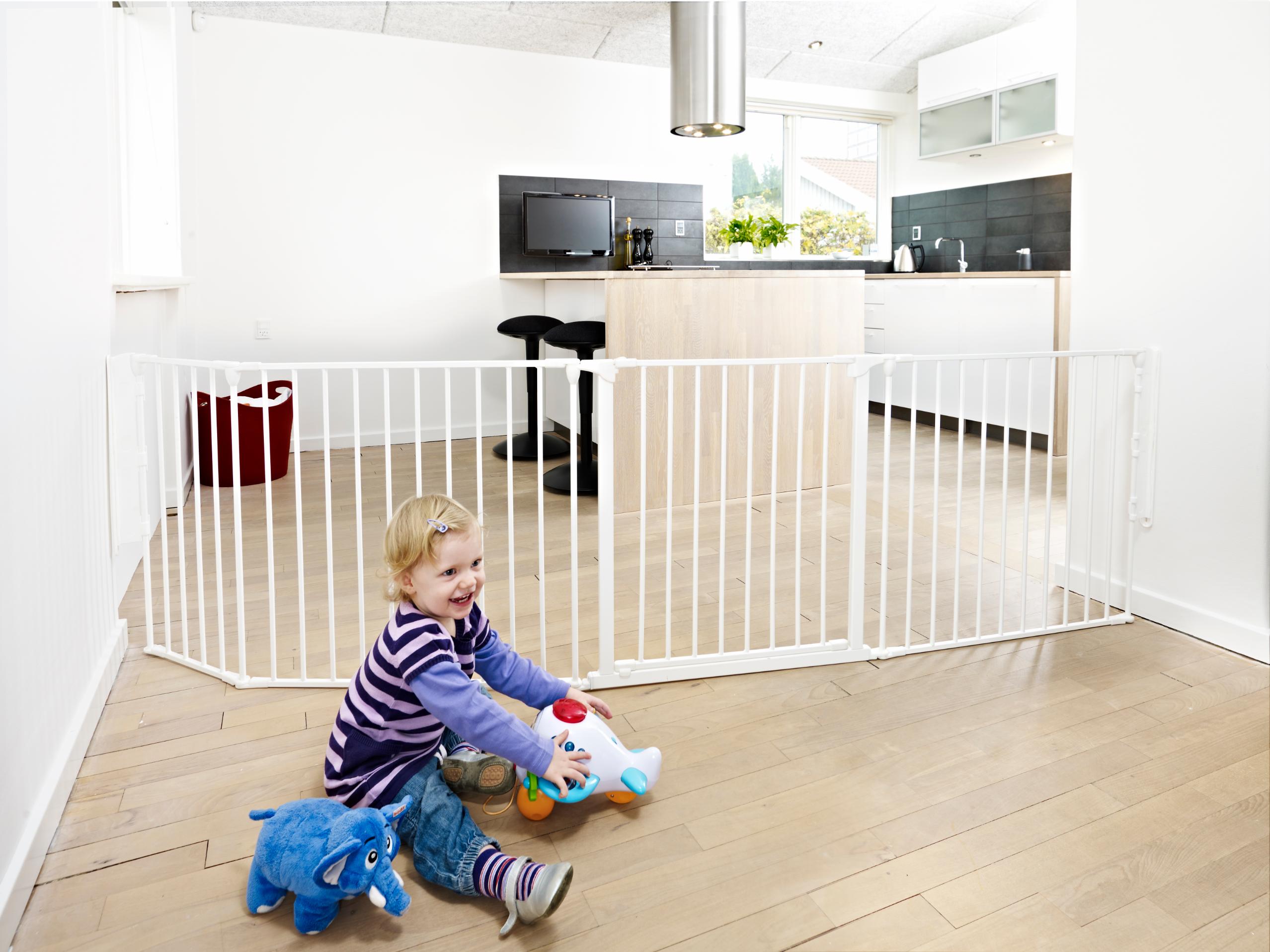 Barn är nyfikna och lär sig genom att gå på upptäcktsfärd. Därför kommer barn säkert att vara nyfiken på det som finns på andra sidan säkerhetsgrinden. Det kan få barnet att skaka i grinden och den ska självklart hålla för det.