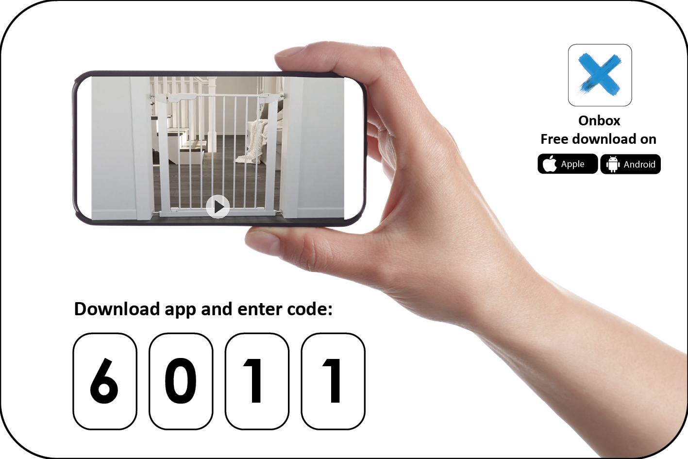 Når du køber et BabyDan sikkerhedsgitter får du en kode med til vores app Onbox. Her kan du finde udførlige vejledningsvideoer til opsætning af alle vores gitre. Vejledningerne er nemme at følge og guider dig gennem opsætningen trin for trin, i dit helt eget tempo.